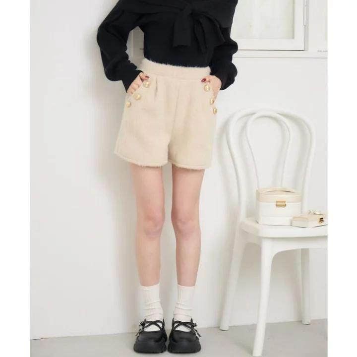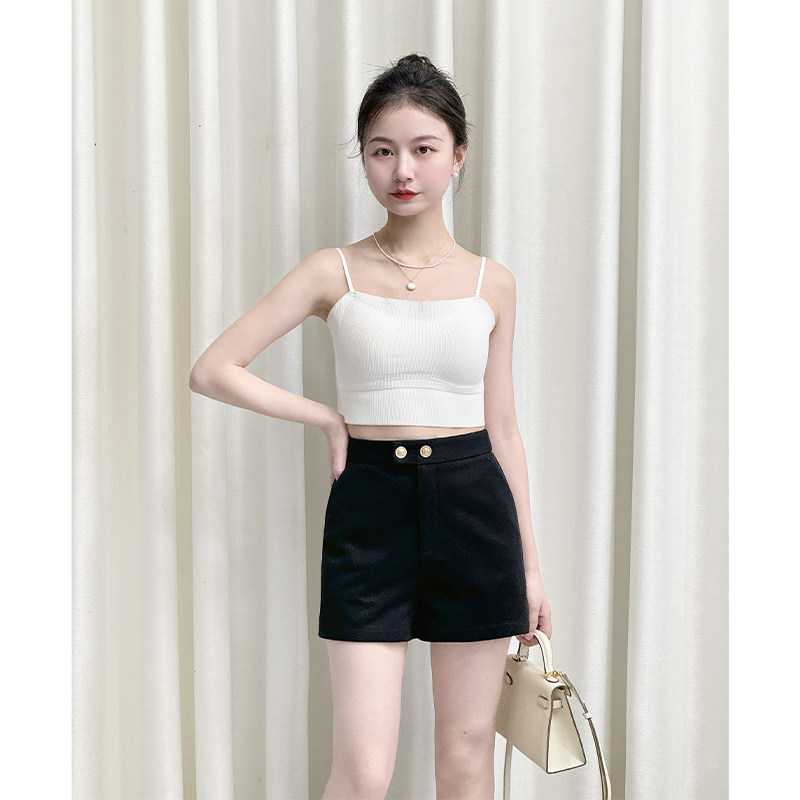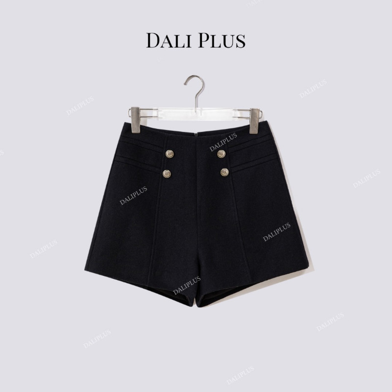 大李plus“羊绒绵羊毛醋酸呢子短裤”黑金高腰百搭短裤-D5ST1497