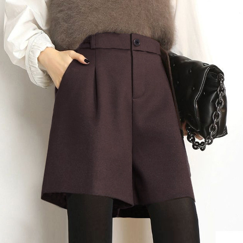 高腰两粒扣女士毛呢短裤秋冬宽松小个子外穿a字阔腿显瘦呢子靴裤