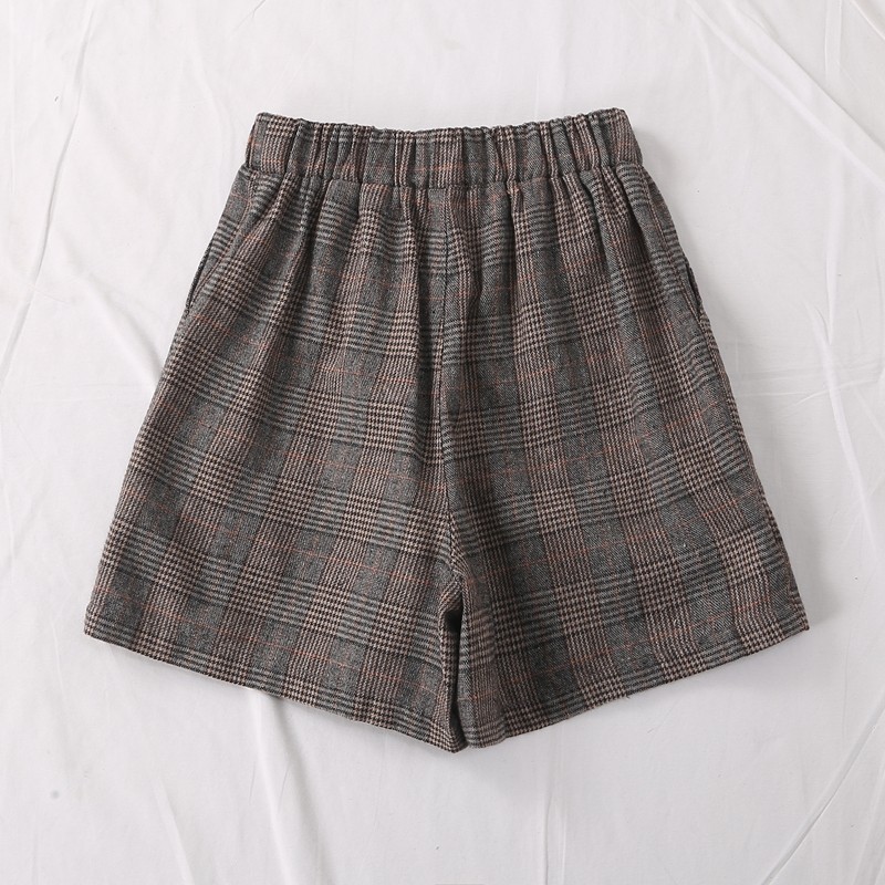 日单春秋新款时尚英伦百搭亲子装金属扣松紧腰呢子短裤靴裤21801