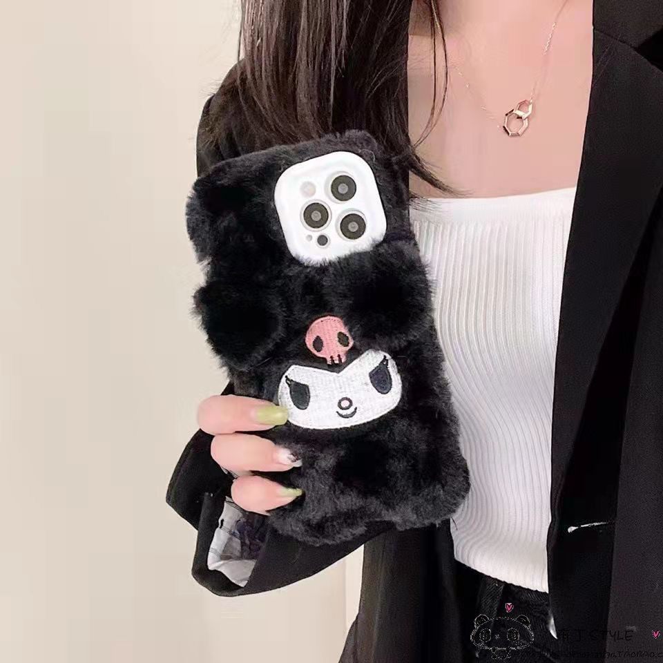 秋冬毛绒库洛米适用iPhone17pro max手机壳16pro黑色15plus苹果13mini网红12毛茸茸14可爱4se3xr软8卡通6iP11