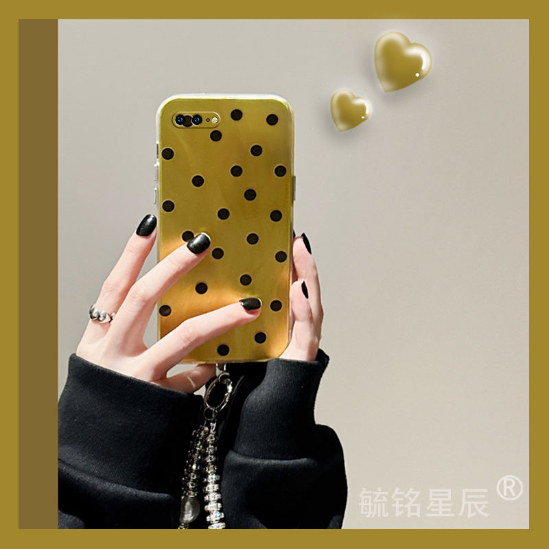 新款ins黑色波点适用苹果8Plus手机壳iPhone7透明se3黄色se2硅胶的6简约6s手腕带5小众5s高级4镭射4s挂绳轻奢