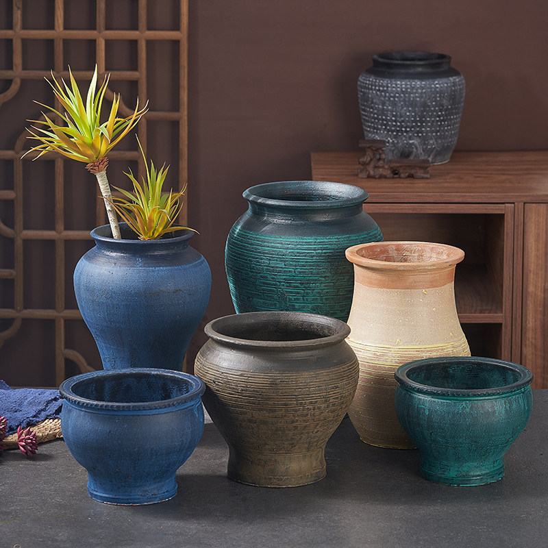 复古花盆大口径火锅盆多肉植物花盆粗陶透气绿植盆栽陶罐家用盆栽