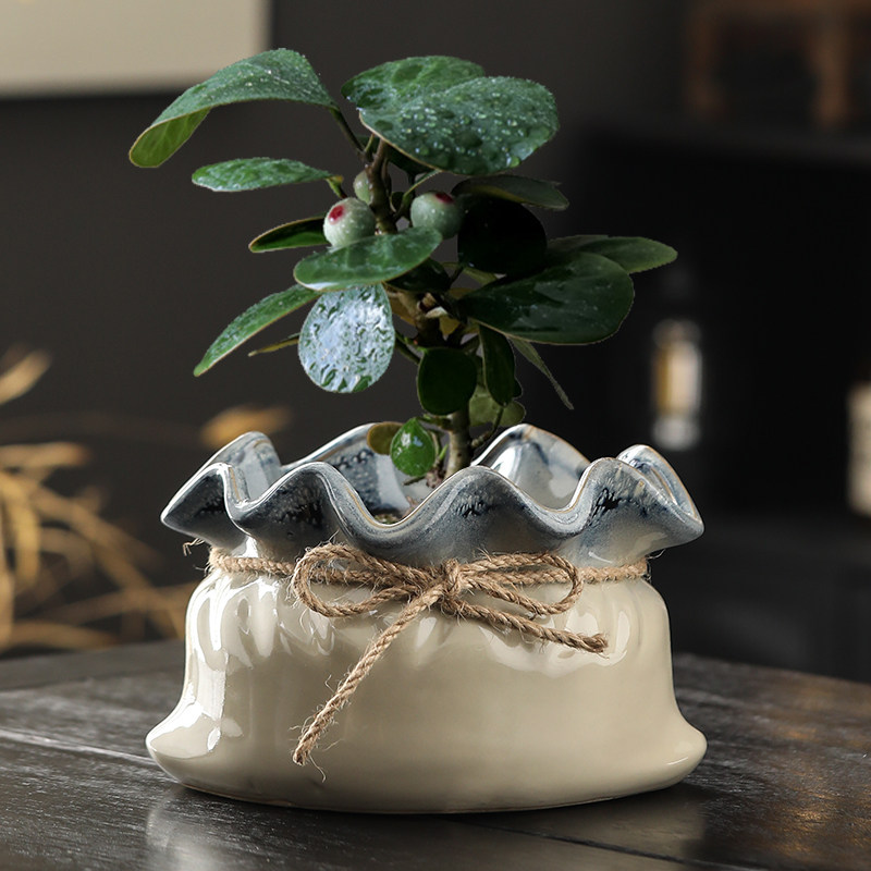 多肉复古花盆中国风创意布袋造型怀旧田小盆栽礼物好养活花卉桌面