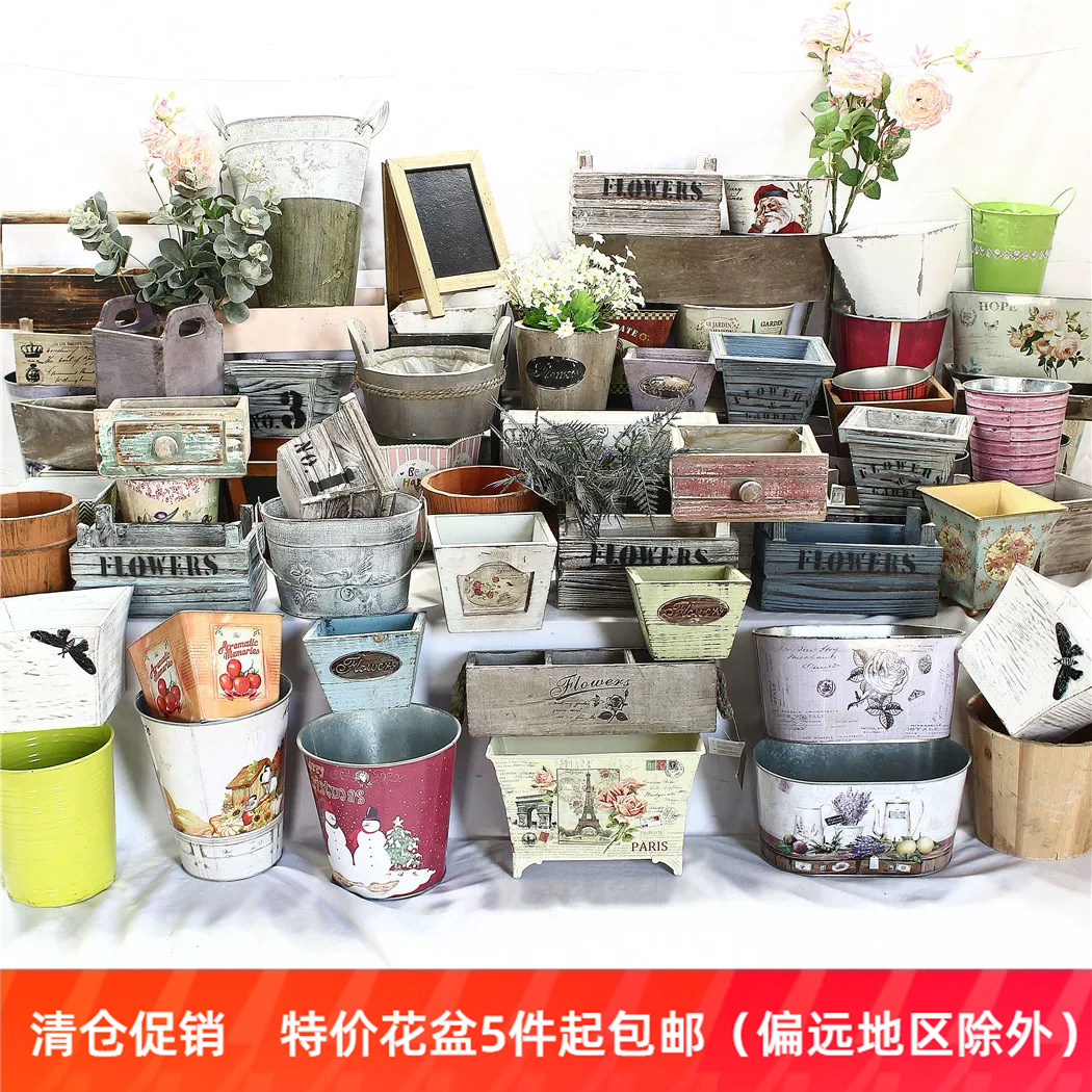 特价花盆孤品大集合-美式乡村风复古花盆铁艺木质多肉盆园艺花器