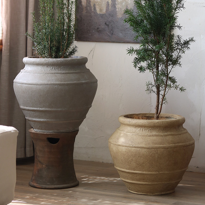镁泥坛子落地大花盆绿植盆栽花器阳台院子茶室服装店复古做旧装饰