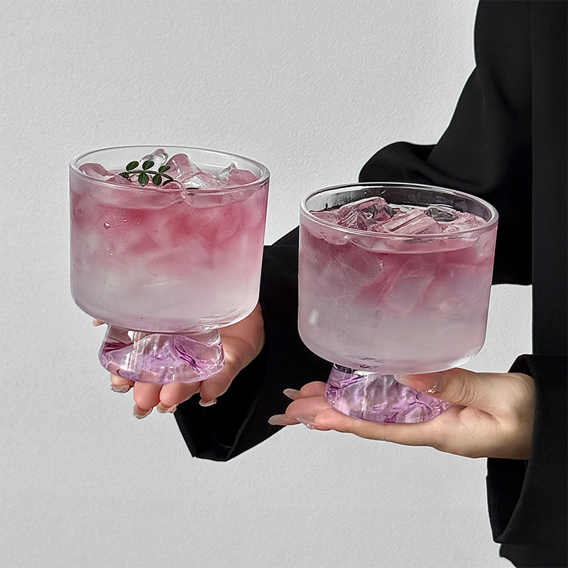 全紫光底玻璃杯高级感小众微醺果汁杯高脚杯酒杯甜品咖啡杯饮品杯