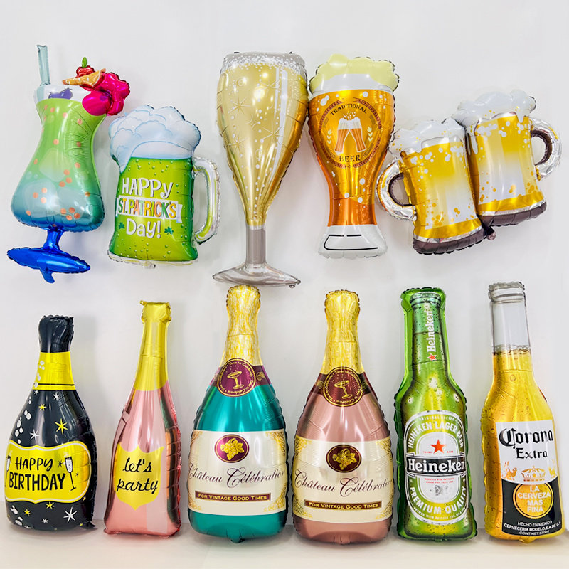 大号香槟瓶铝膜气球威士忌高脚杯酒杯喜力扎啤果汁黑蓝粉金色酒瓶