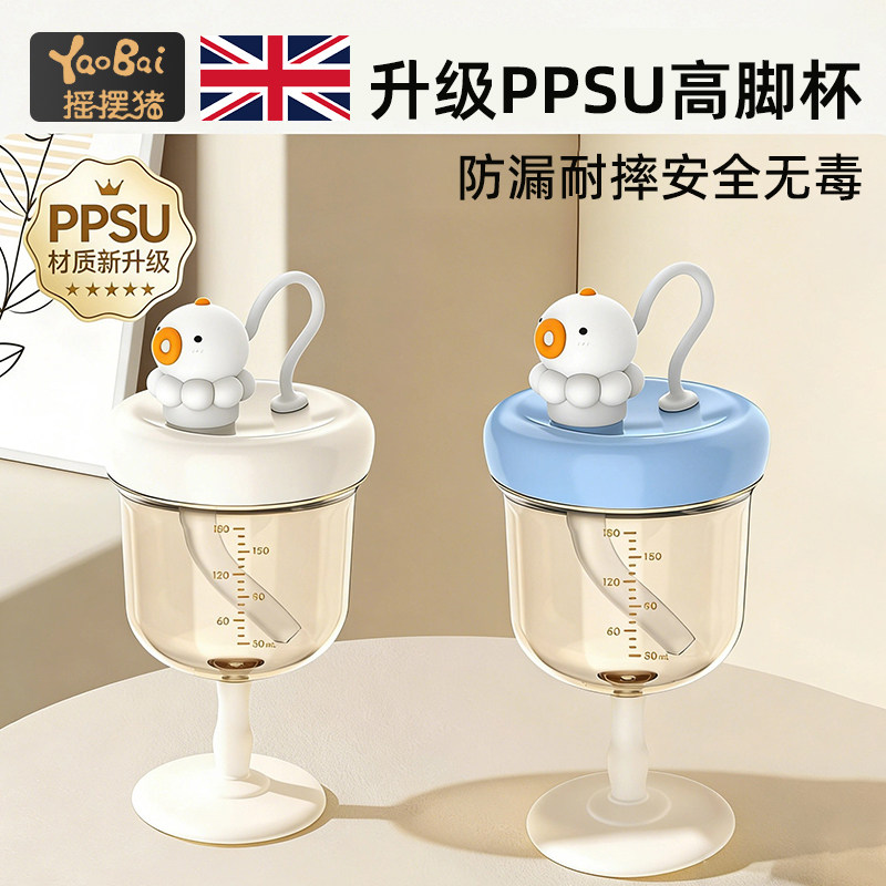 如山儿童PPSU高脚杯学饮杯鸭嘴宝宝喝水家用牛奶杯酒杯式奶瓶水杯