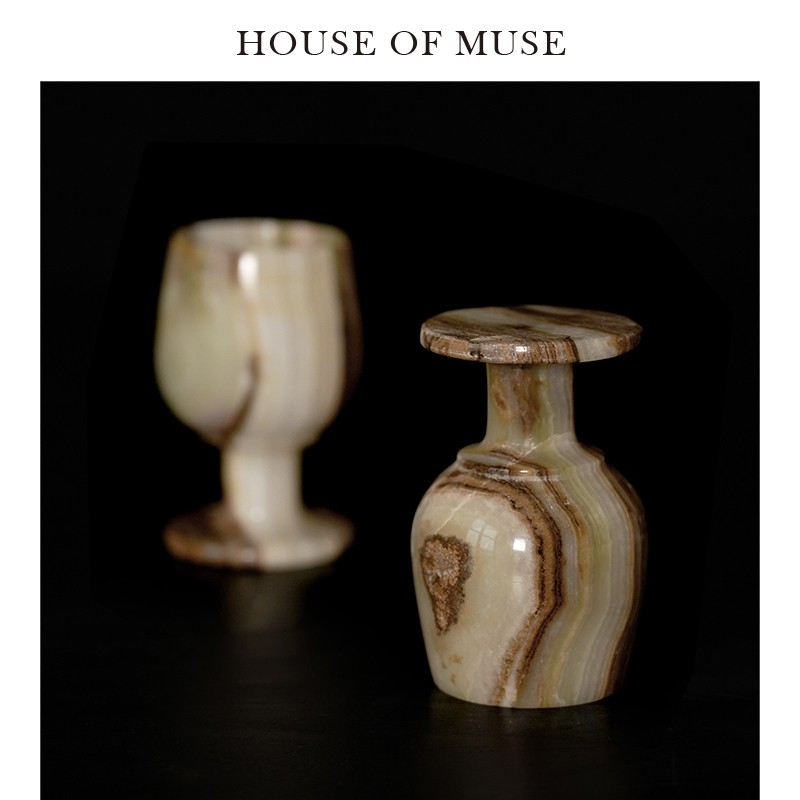 缪斯家 复古大理石高脚杯酒杯家用客厅样板间小众装饰品桌面摆件