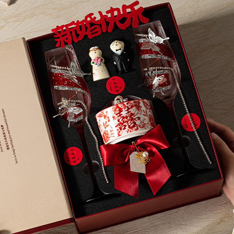 香薰蜡烛礼盒婚礼香槟杯新婚礼物轻奢高档敬酒杯高脚杯酒杯送新人