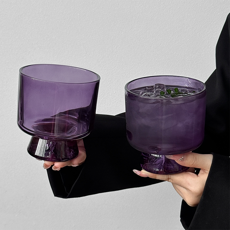 高级感小众紫色微醺果汁杯光底玻璃杯高脚杯酒杯甜品咖啡杯饮品杯