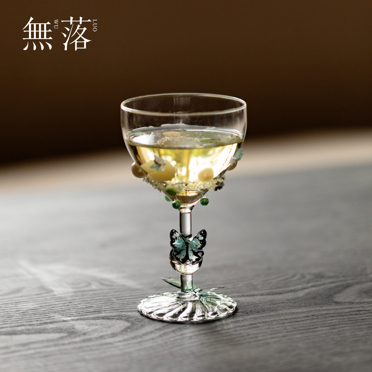 无落手工原创玻璃青影蝶高脚杯酒杯高颜值透明品茗杯香槟杯果酒杯