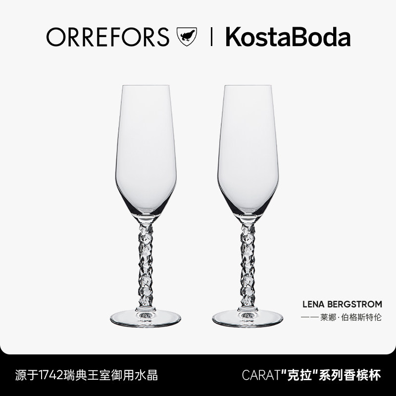 Orrefors进口水晶香槟杯Carat克拉奢华高档高脚杯酒杯礼盒2只装