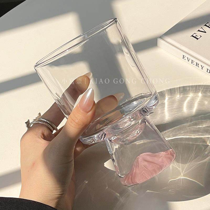 小众山底微醺果汁杯高脚杯酒杯甜品咖啡杯饮品杯光底玻璃杯高级感
