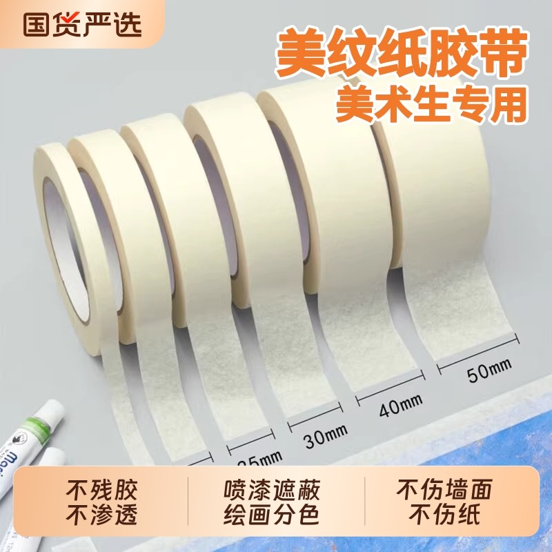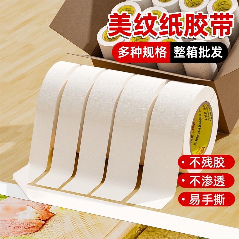 美纹纸胶带可书写不残留手撕无痕美术生专用批发汽车喷漆分色纸贴边画画素描装修外墙真石漆遮蔽美缝美文胶纸