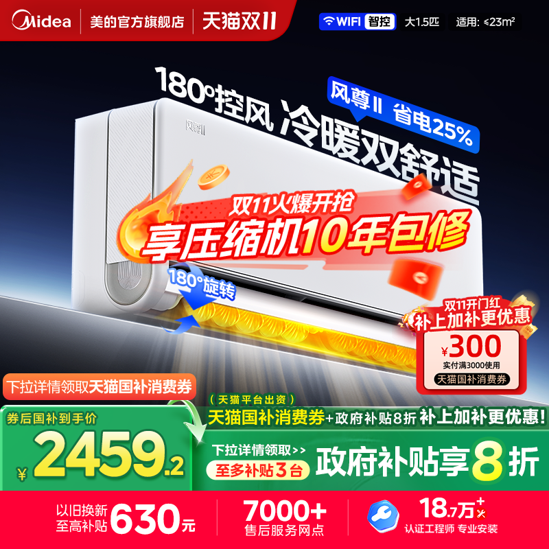 美的风尊二代Pro空调1.5匹一级安睡冷暖变频官方正品家用挂机