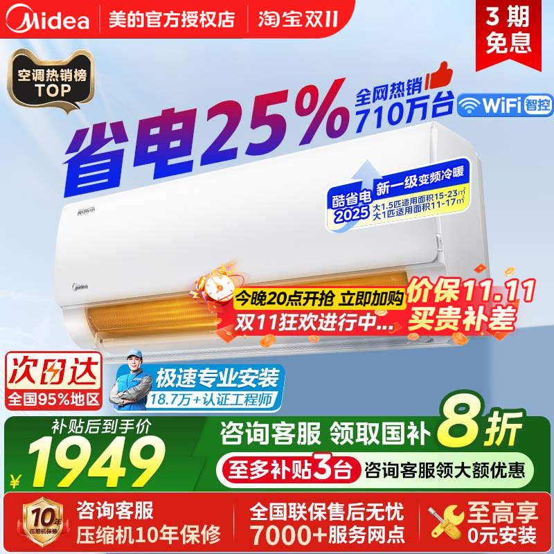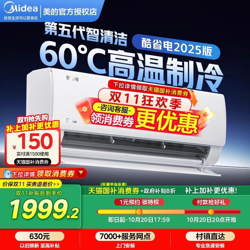 美的空调酷省电2025版大1.5匹新一级能效家用变频挂机官方旗舰店