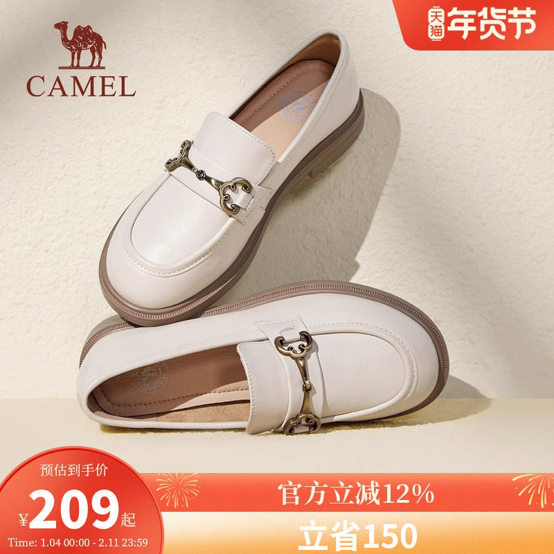 骆驼乐福鞋女2026春季新款真皮英伦风小皮鞋休闲通勤低跟单鞋女