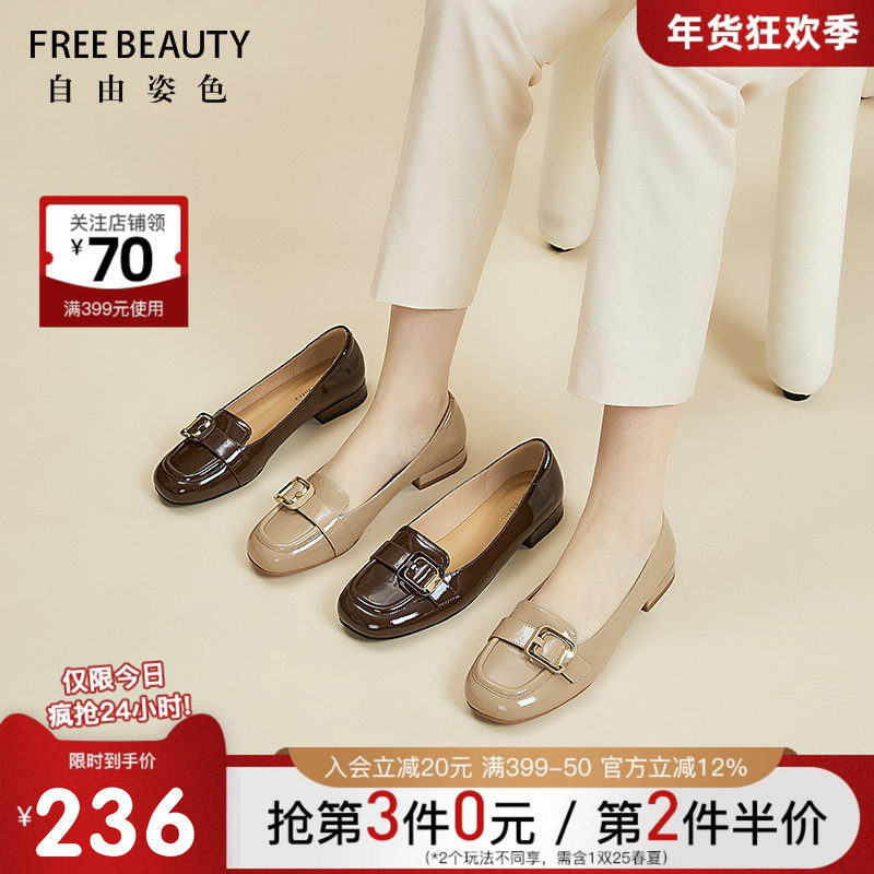 自由姿色女鞋春秋新款百搭乐福鞋质感漆皮牛皮低跟单鞋女小皮鞋女