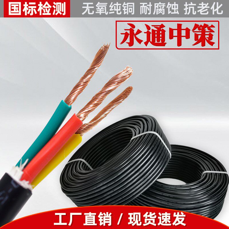 永通中策四芯电缆线3芯护套线2.5/10/6/4平方电线国标铜芯rvv软线