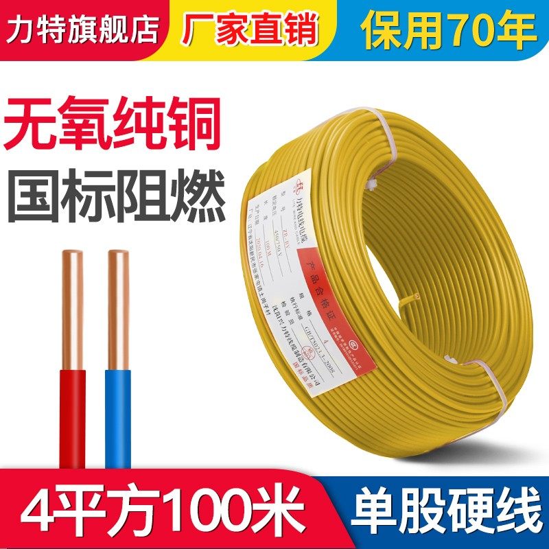4平方电线100米国标家用BV铜线阻燃单股家装修纯铜芯四硬塑线电缆