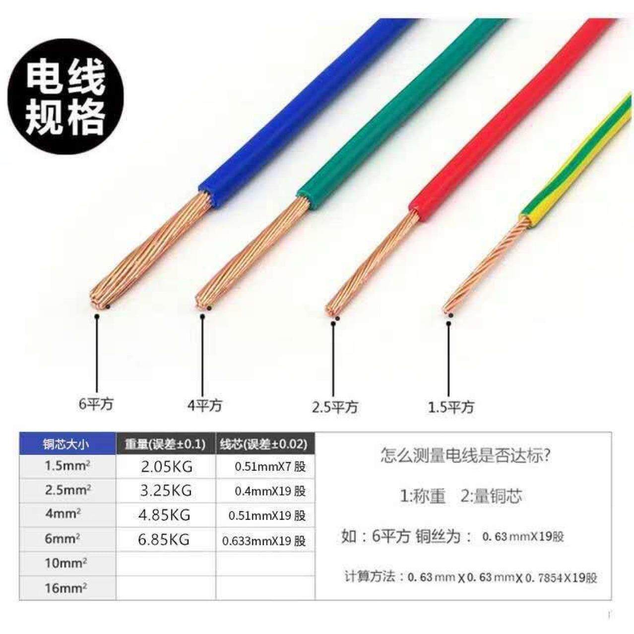 国标BV电线家用家装电线1/1.5/2.5/4/6平方纯铜芯单股硬线1米散剪