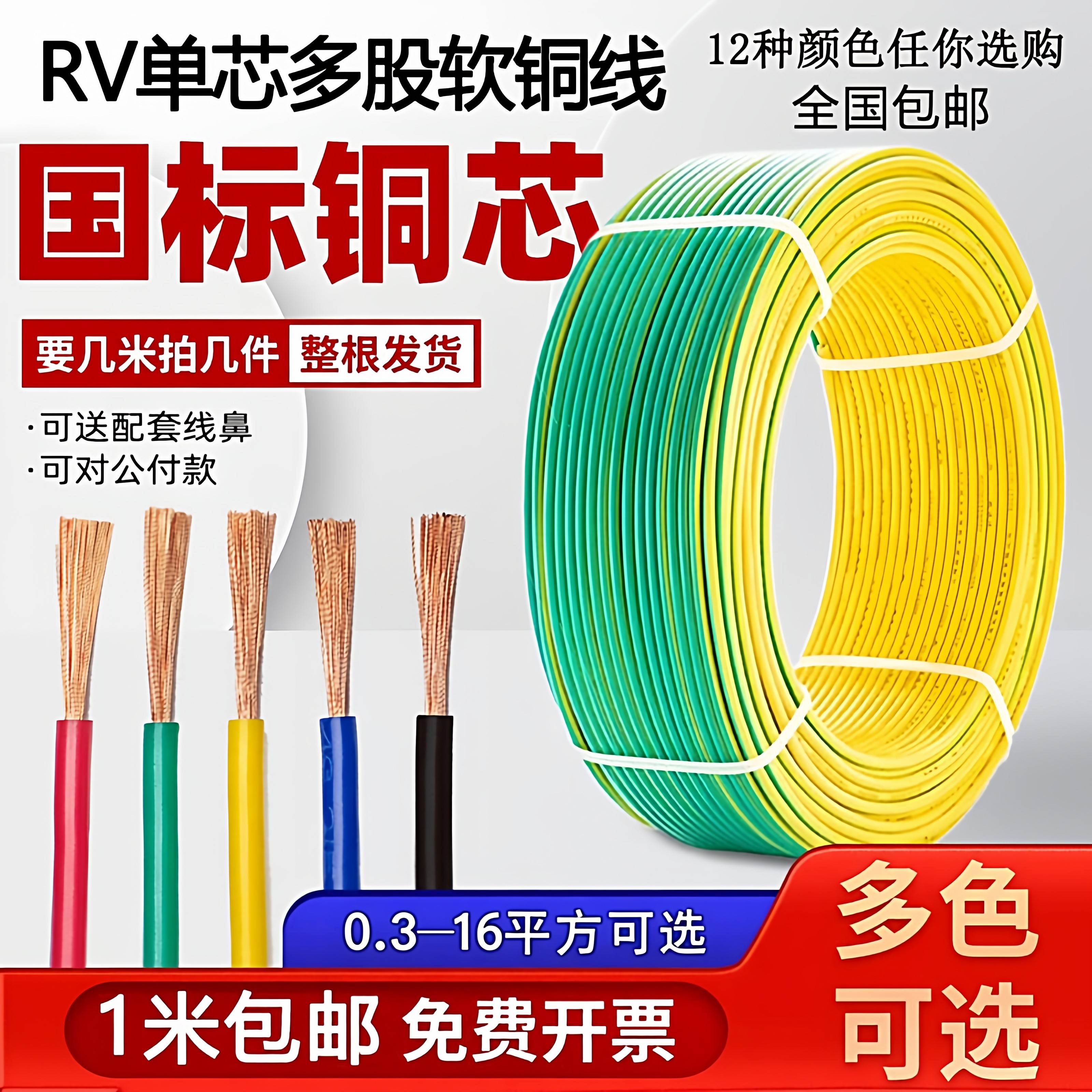 RV软线4平方电线.5电线灯纯铜单芯细2铜软地线接连T线电接子线RV