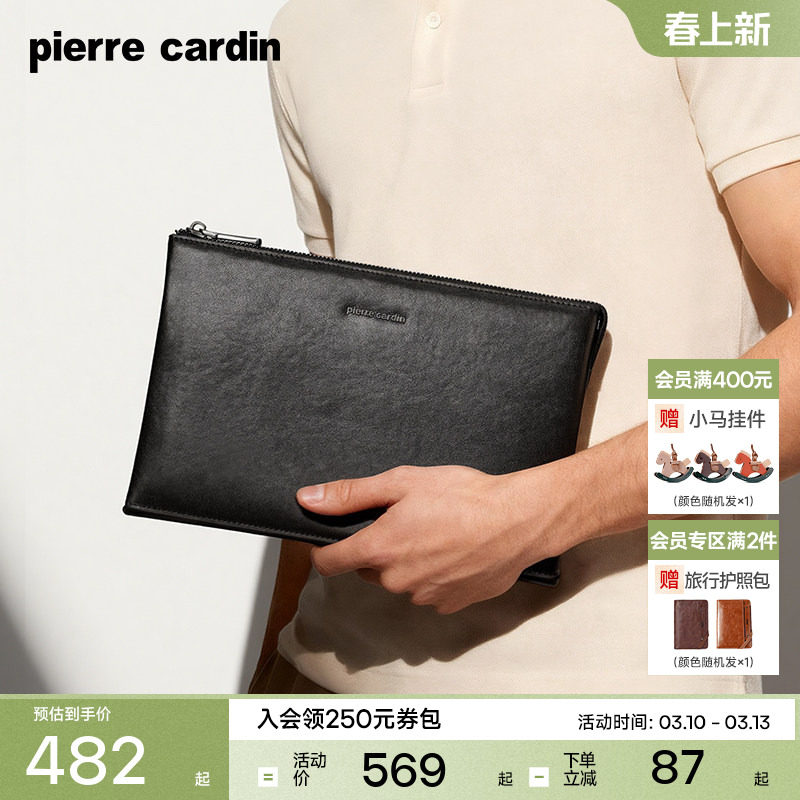 【真皮】皮尔卡丹男包手拿包商务大容量男士手抓包高档牛皮信封包