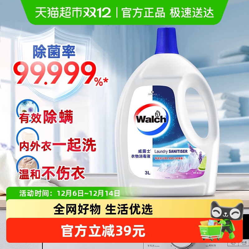 威露士衣物除菌消毒液3L*2瓶青柠薰衣草深层杀菌除螨洗衣消毒水