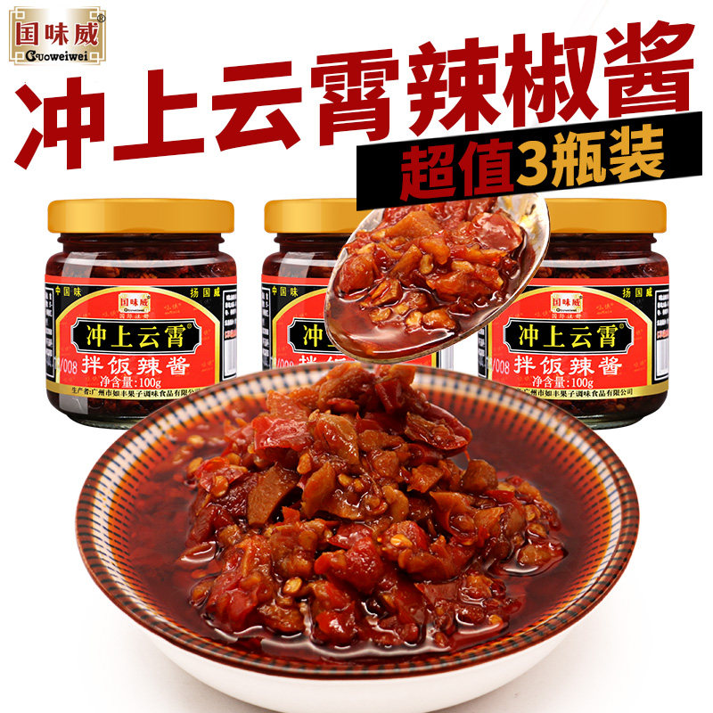国味威冲上云霄辣椒酱100g*3拌面拌饭剁椒蒜蓉火锅蘸酱料拌饭辣酱