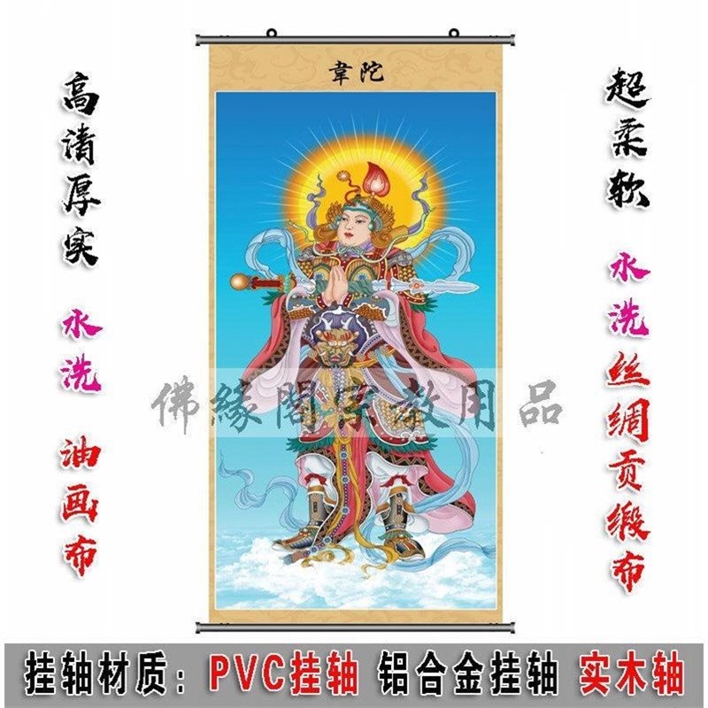 大小款 护法韦驮陀尊天菩萨画像 佛像挂像挂画自粘贴画可带实木框