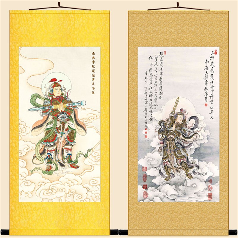 大小款 护法韦驮陀尊天菩萨画像佛像挂像挂画自粘贴画 可带实木框