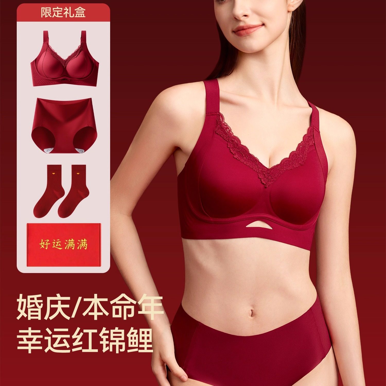 2026新款本命年红色无痕内衣女礼盒套装提拉聚拢防下垂收副乳文胸