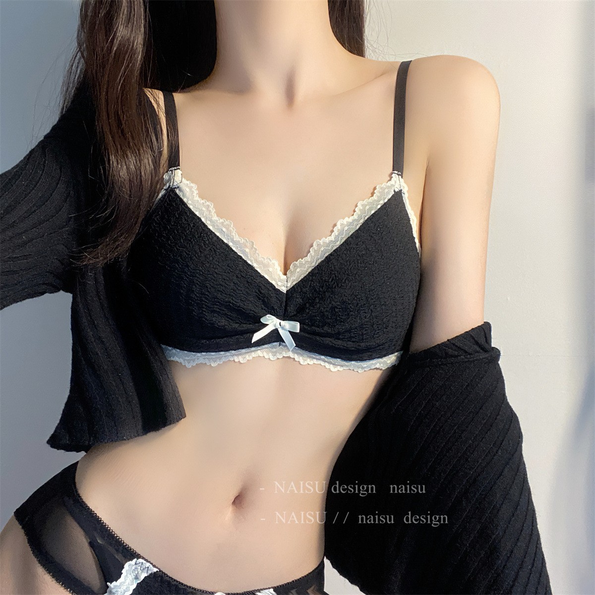 日系内衣女风琴褶皱蝴蝶结舒适无钢圈聚拢小胸平胸少女文胸罩套装