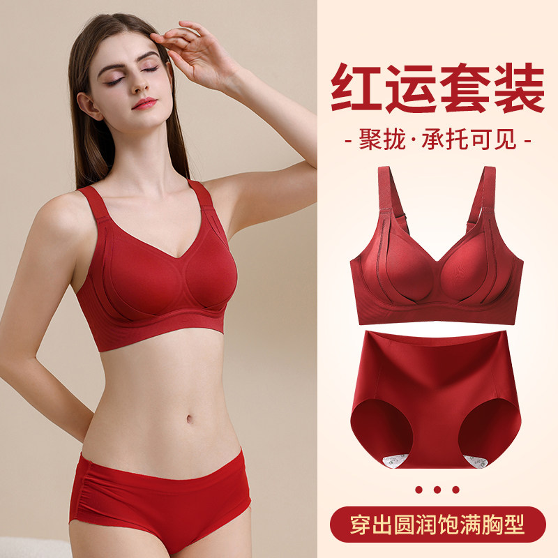 2025新爆款文胸本命年红色无痕内衣女套装小胸聚拢提拉防下垂薄款
