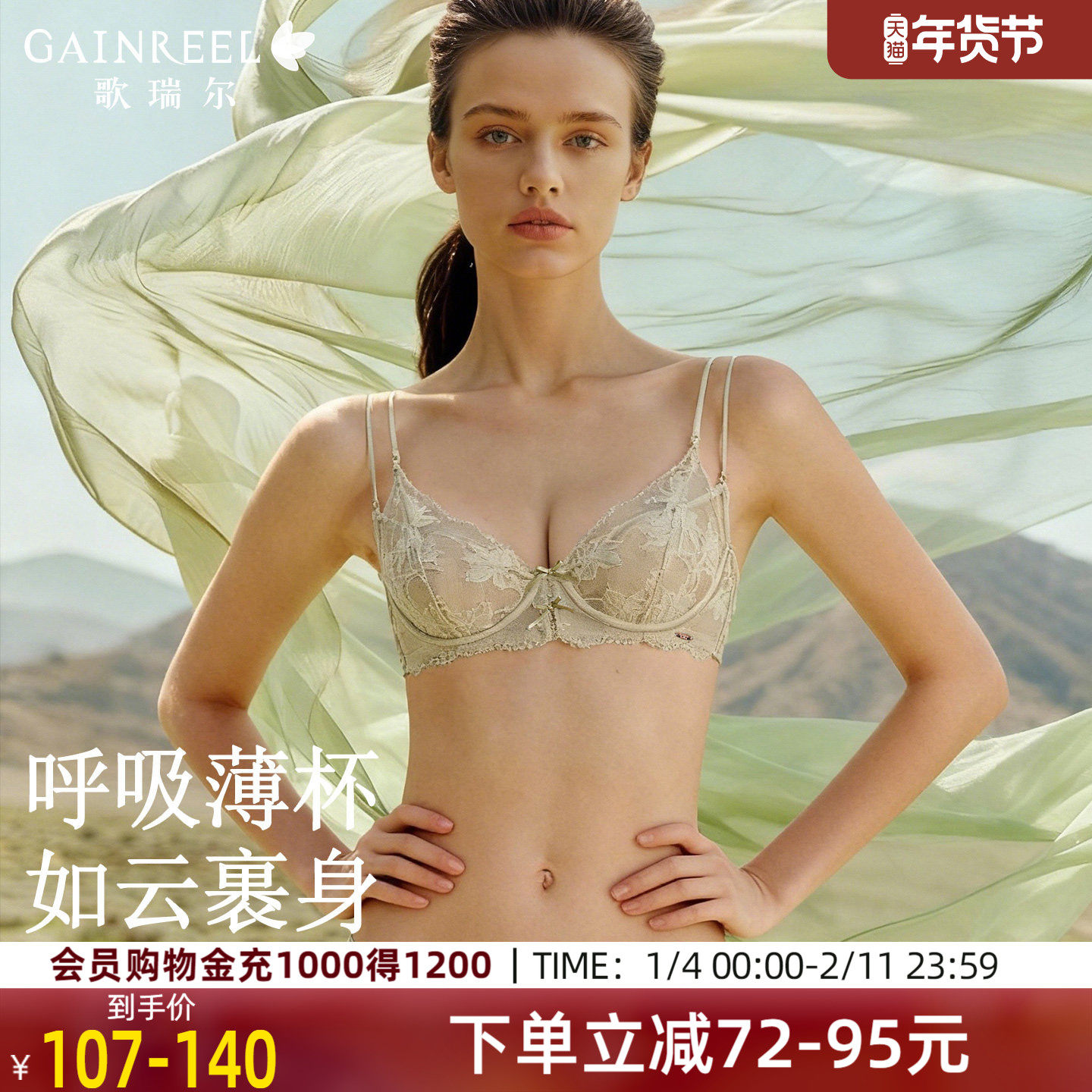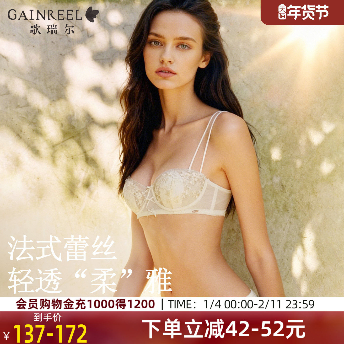 歌瑞尔法式蕾丝性感内衣胸大显小轻薄有型防下垂文胸罩2025年新款