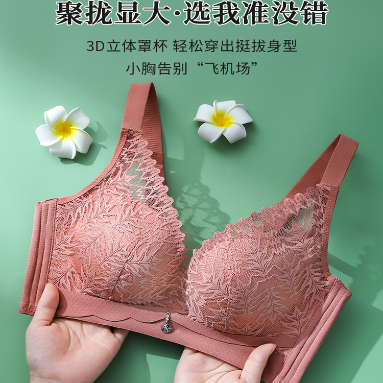 正品牌文胸品牌专柜正品小胸显大聚拢无钢圈收副乳蕾丝内衣女套装