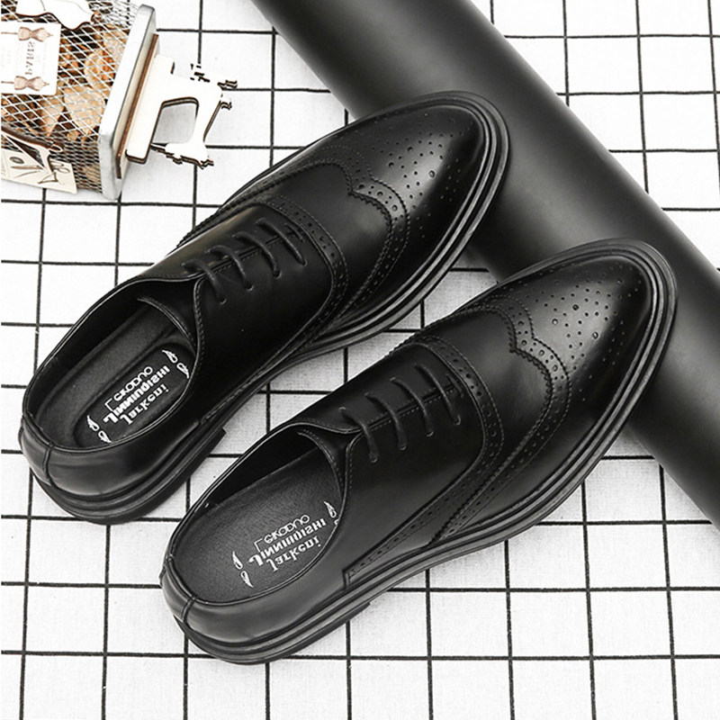 男鞋布洛克休闲增高皮鞋真皮网红社会人小皮鞋男士潮鞋尖头豆豆鞋