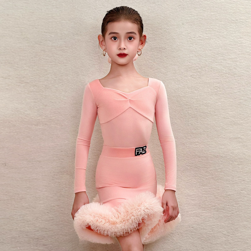 FAZ秋冬儿童网红拉丁舞蹈练功服少儿长袖高端训练演出表演服套装