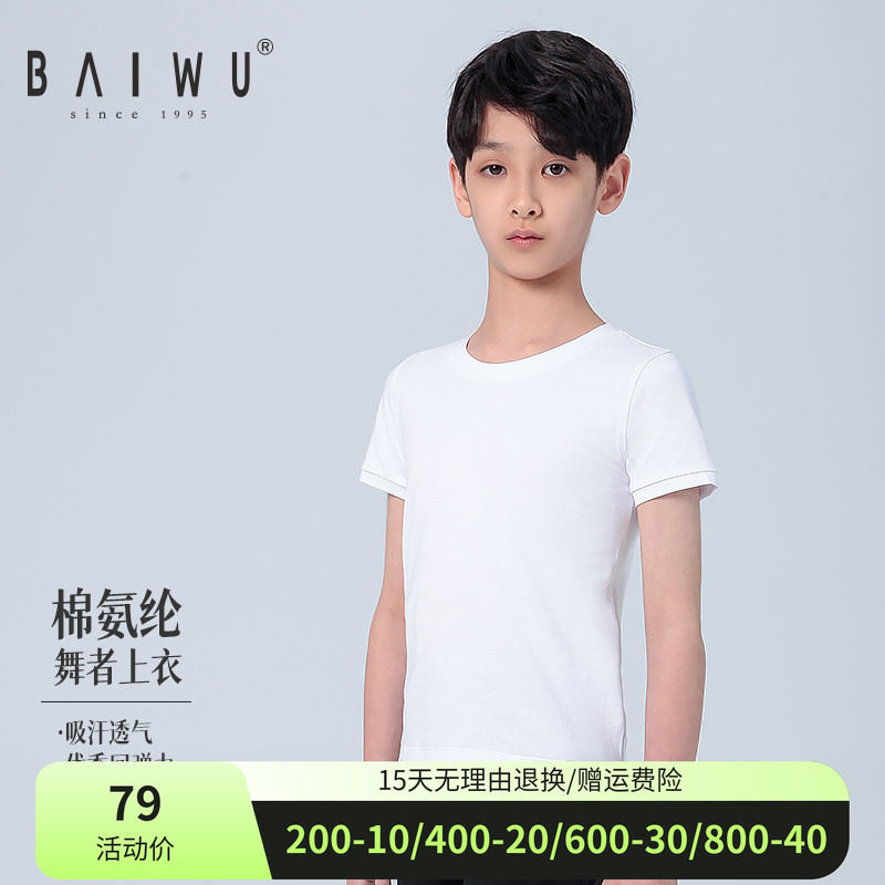 柏屋儿童舞蹈上衣练功半袖形体服 男童训练圆领T恤衫11321216