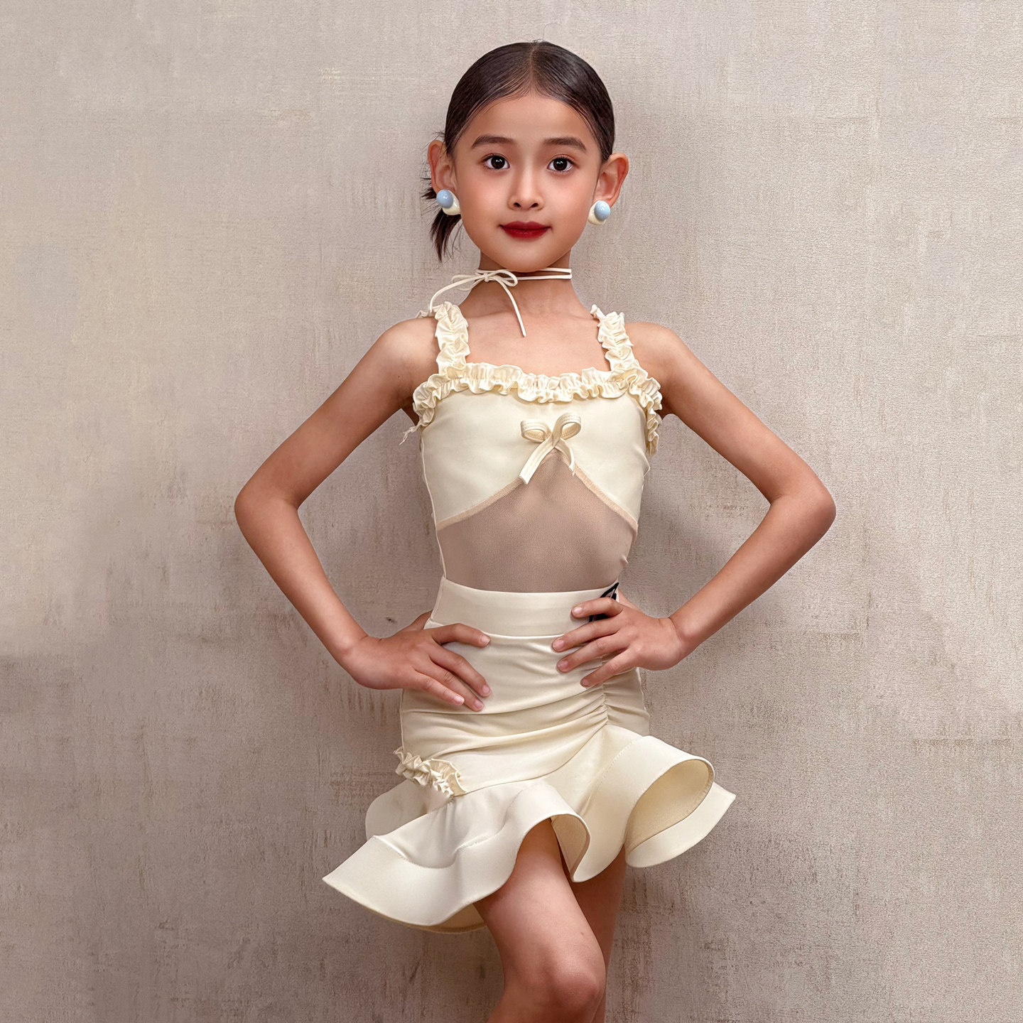 梵蒂恺拉丁舞服女童2025新款高级感训练表演练习服装少儿网纱