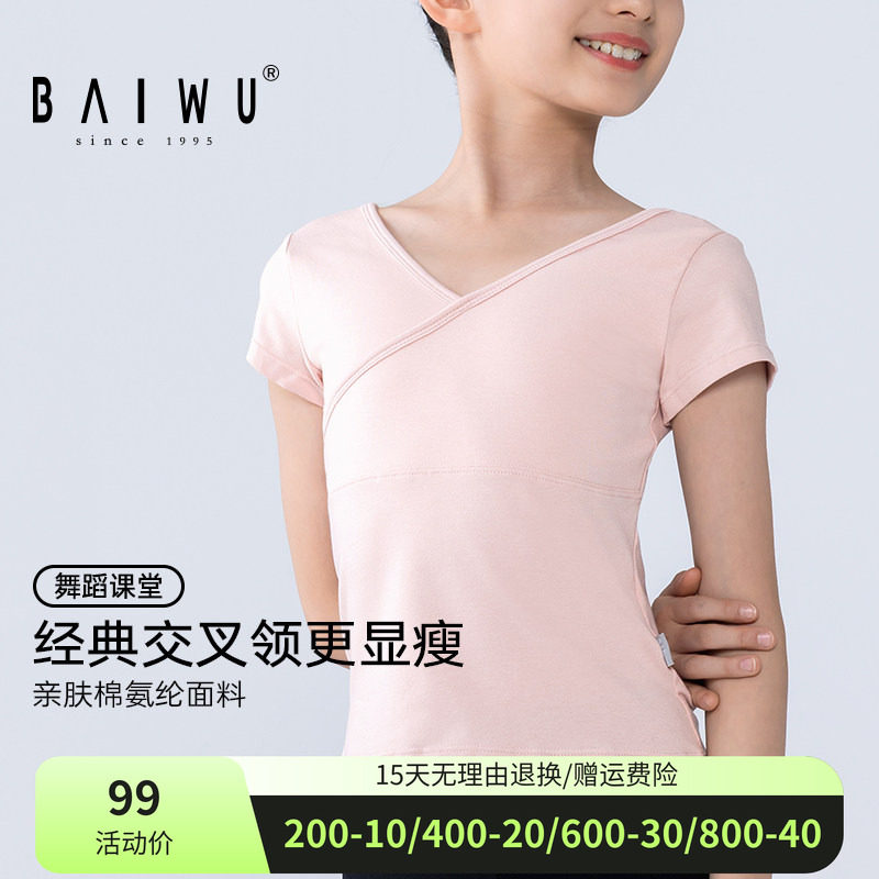 柏屋舞蹈短袖上衣课堂训练T恤前交叉民间舞形体服儿童女121220023