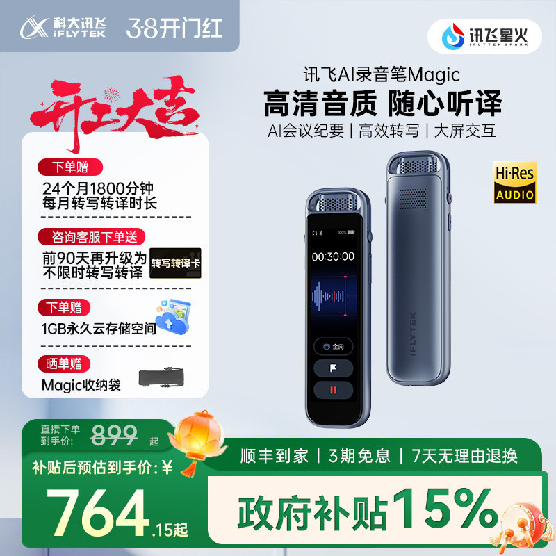 咨询客服科大讯飞录音笔Magic专业录音转文字超长续航录音笔