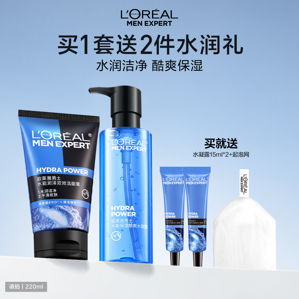 欧莱雅男士水能护肤套装双效洗面奶深层补水长久保湿酷爽男士专用