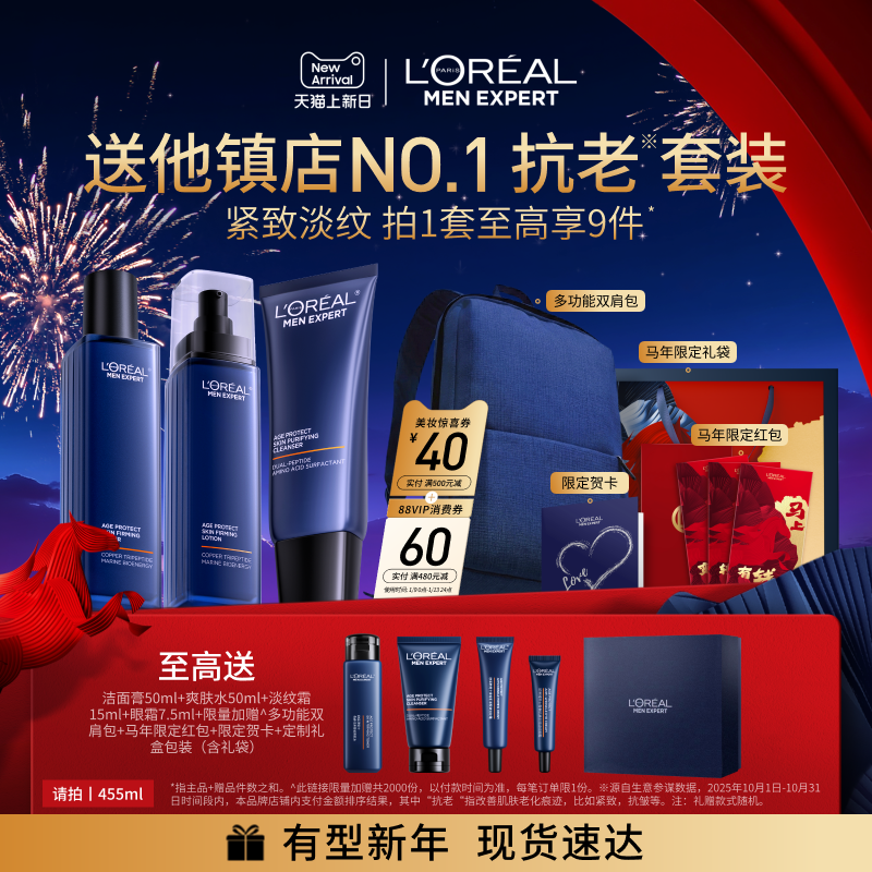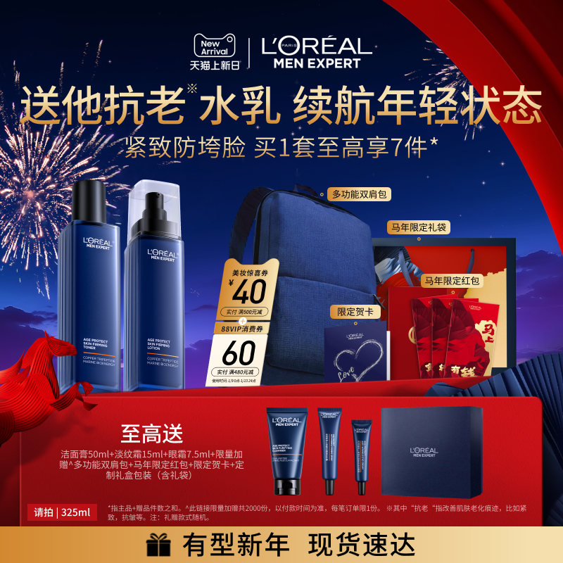 【新年礼物】欧莱雅男士淡纹水乳套装紧致保湿护肤品男生肖战同款