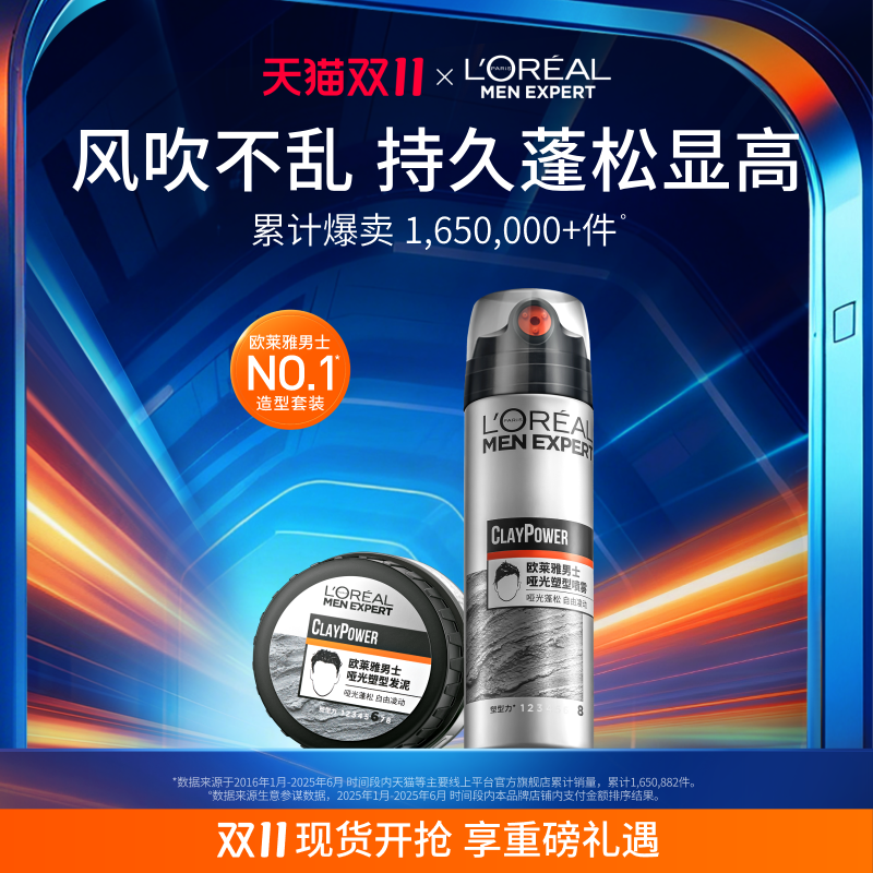 【双11立即抢购】欧莱雅男士哑光发泥喷雾套装持久定型非发蜡发胶