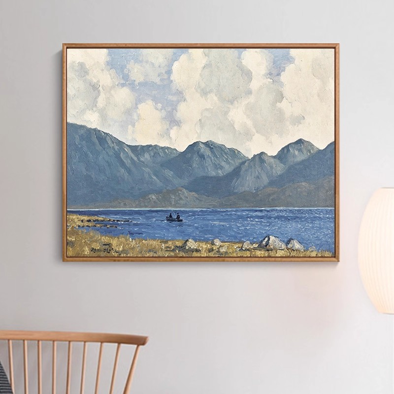 山水装饰画横版成品仿油画小众清新高级感艺术唯美卧室客厅摆挂画