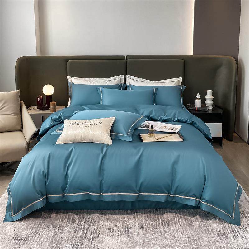 60支长绒棉四件套简约风纯棉被套床单床笠单双人高档床上四件套