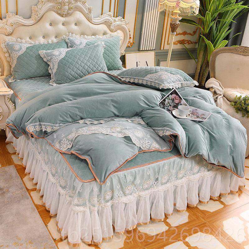 高档床上四件套床裙款韩版公主8风加夹棉水晶绒罩被套4厚件套1.床