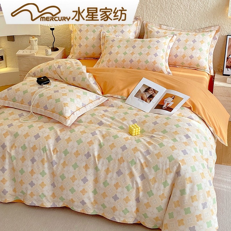 水星家纺纯棉四件套100%全棉磨毛床单被罩床上用品高档床上四件套
